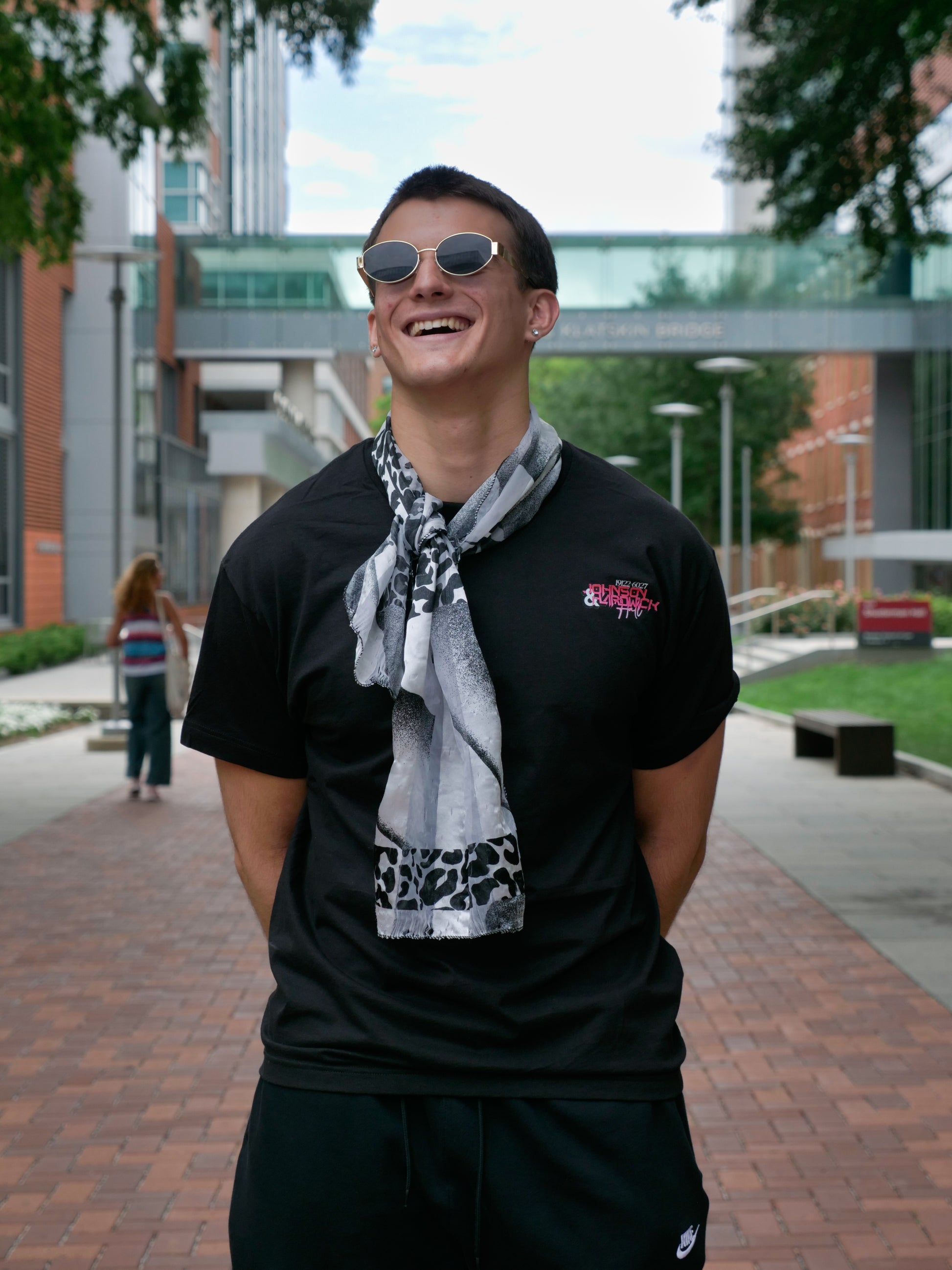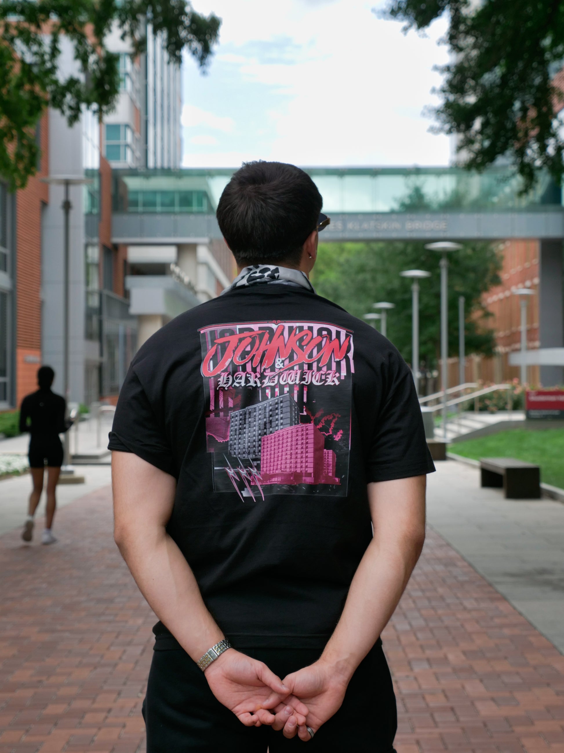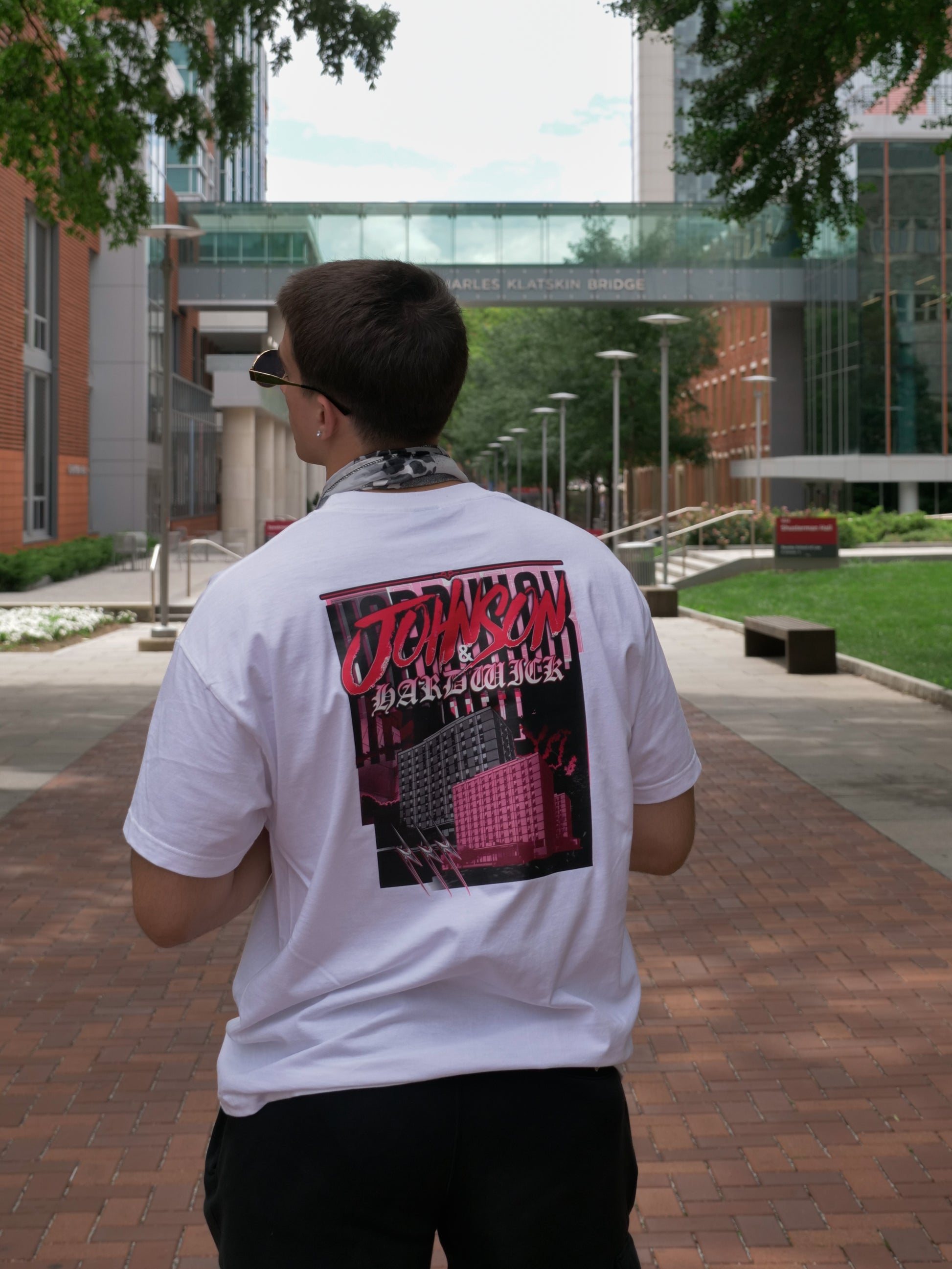This limited-run shirt captures the energy of campus life with bold graphics of one of Temple’s most iconic dorms. Featuring a sleek front chest print and a full back design blending urban textures with school pride, it’s the perfect balance of streetwear and student culture. Available in both black and white, this tee is made for unisex wear with a relaxed fit — designed for every Owl who calls Johnson & Hardwick home.